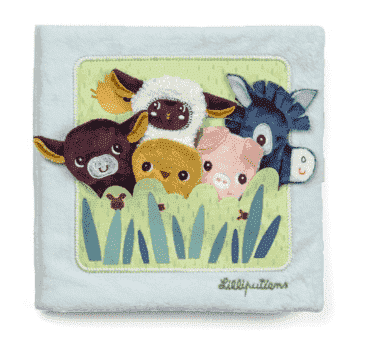 Immagine di un bambino intento nella lettura del libro della volpe. Concentrato, tiene il libro aperto sulle ginocchia e segue attentamente le pagine con lo sguardo.